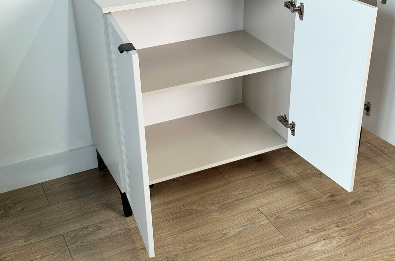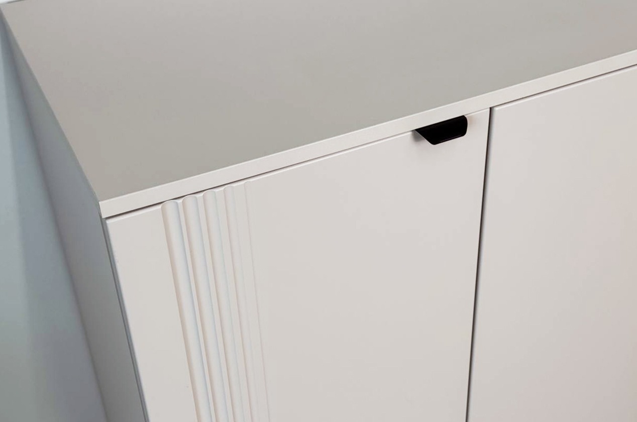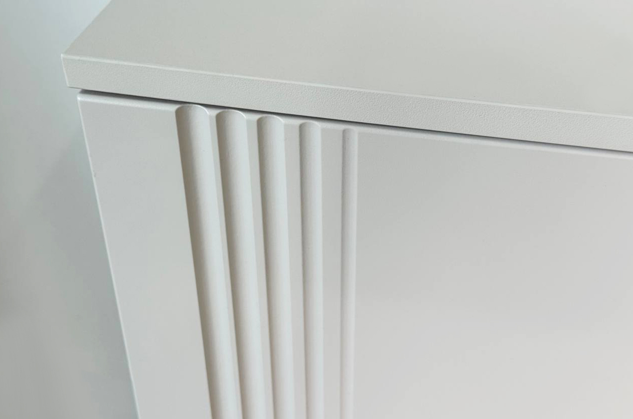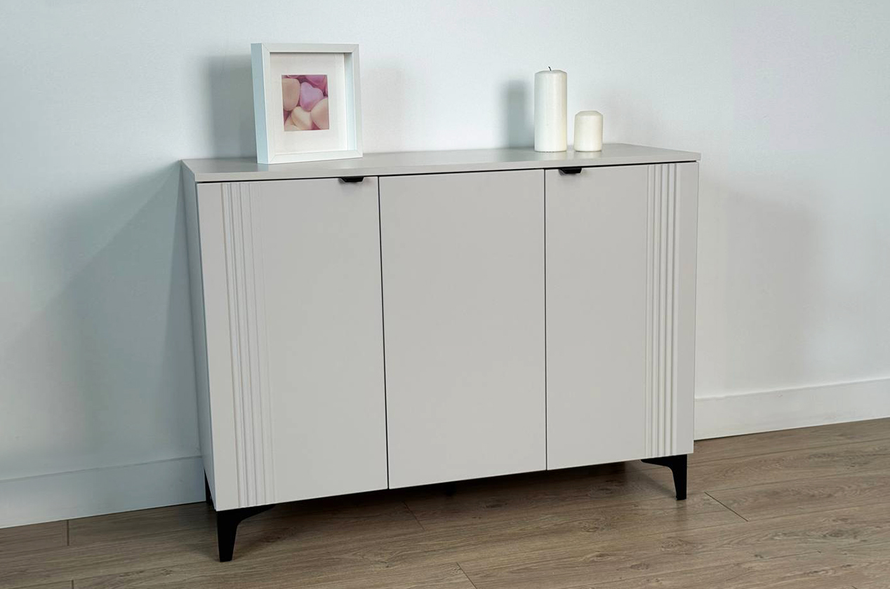 • Элегантный дизайн: Фрезерованные фасады из МДФ придают комоду рельефность и изысканный вид, делая его полноценным элементом декора.