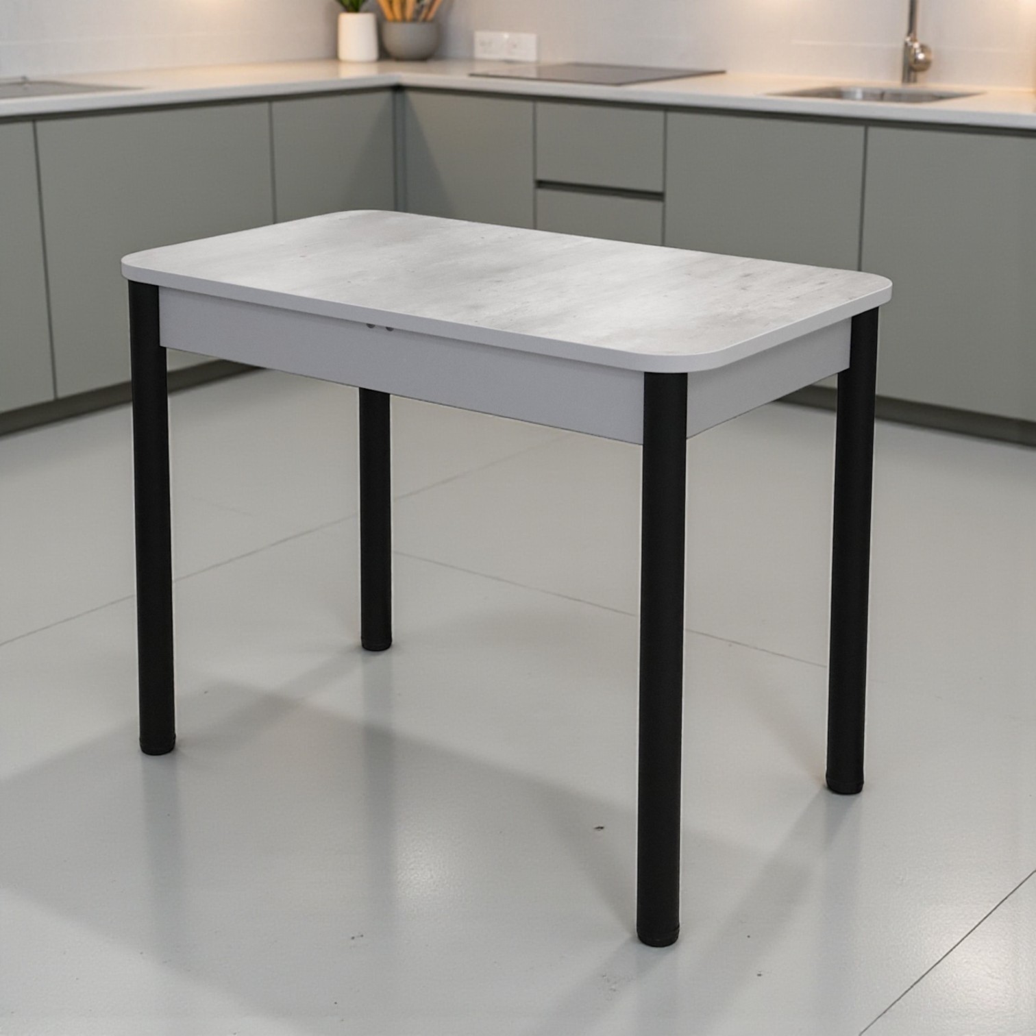 —Стол Беседа НЕРАСКЛ 980*580 Пластик (Метрополитан) B1, Опоры черные+ЛДСП Металлик