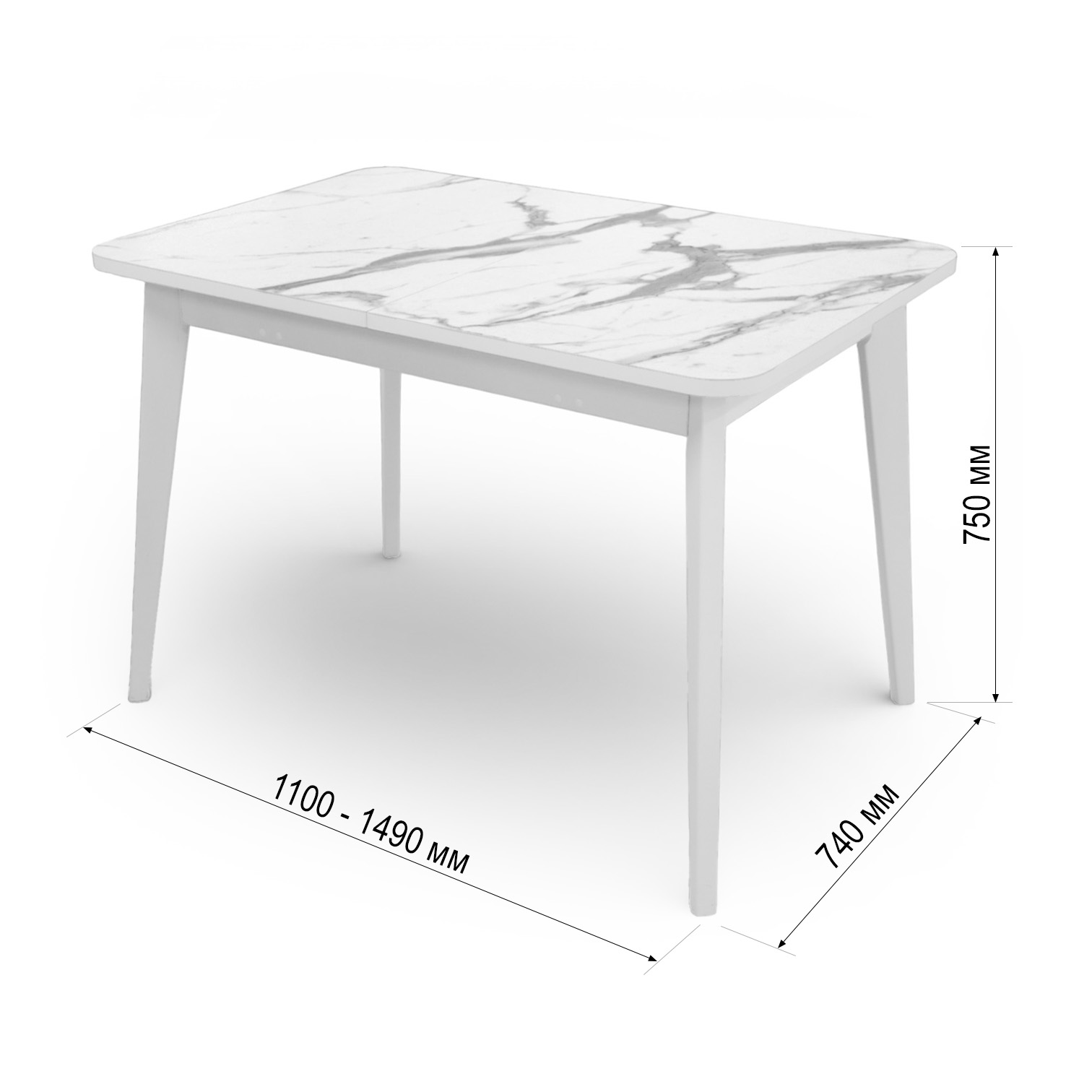 —Стол Бриз-2 1100(390)*740 Пластик, 005 Венато (Мрамор белый), подстолье дерево,эмаль белая