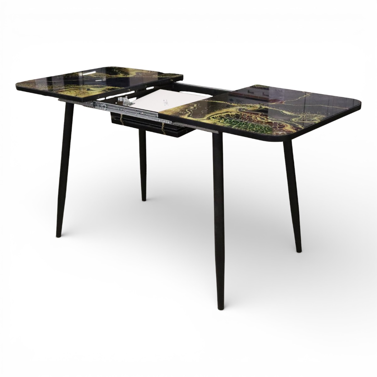 Стол обеденный Турин 110(+40)*70 Абстракция / черный