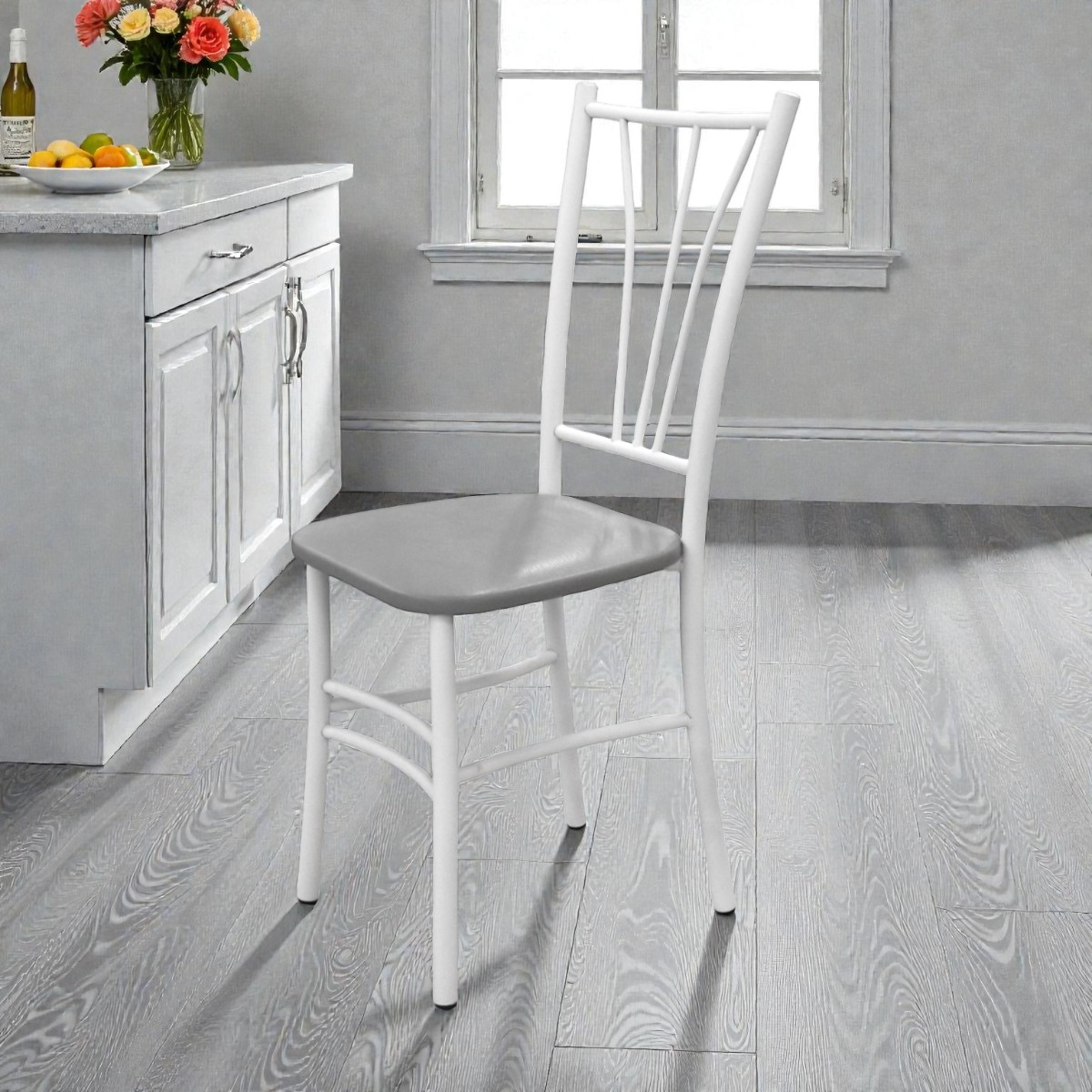 —Стул кухонный Трилогия (белый, к/з Серый 700)