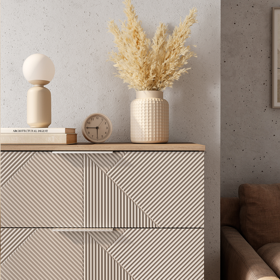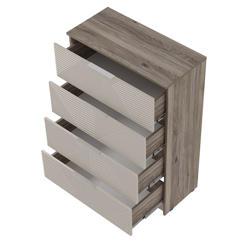 Комод «Эмилия» КМ-02 — это идеальное сочетание минималистичного дизайна и продуманной функциональности. Модель с четырьмя просторными ящиками станет стильным решением для хранения одежды, белья и аксессуаров в спальне, гостиной или детской. Нежная цветовая гамма «дуб смоки» и «айриш» в сочетании со стильной фрезеровкой фасадов наполняет интерьер светом и легкостью. Эргономичные фасады обеспечивают удобное и легкое открывание ящиков без лишних усилий.