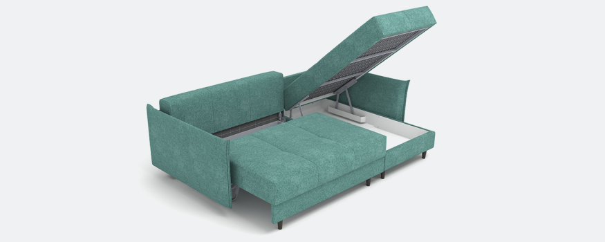 • Вместительные места хранения: В диване предусмотрены отсеки для постельных принадлежностей и других вещей.