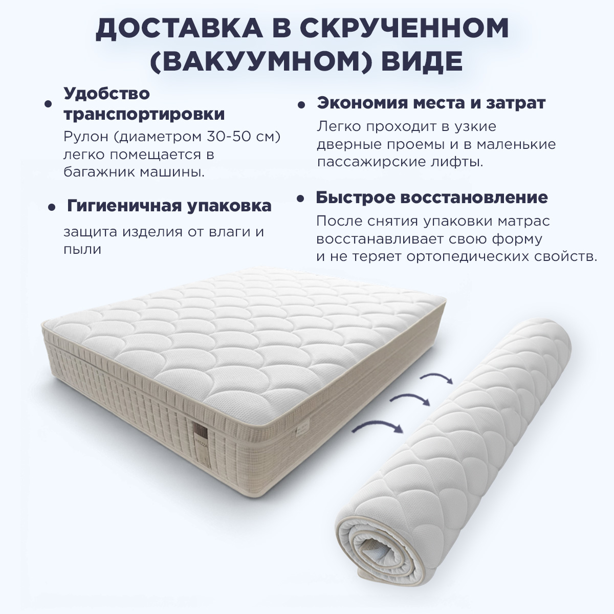 ✓ Умная доставка в вакуумной упаковке (roll pack): Главное удобство современности! Матрас поставляется свернутым в компактный рулон, что: