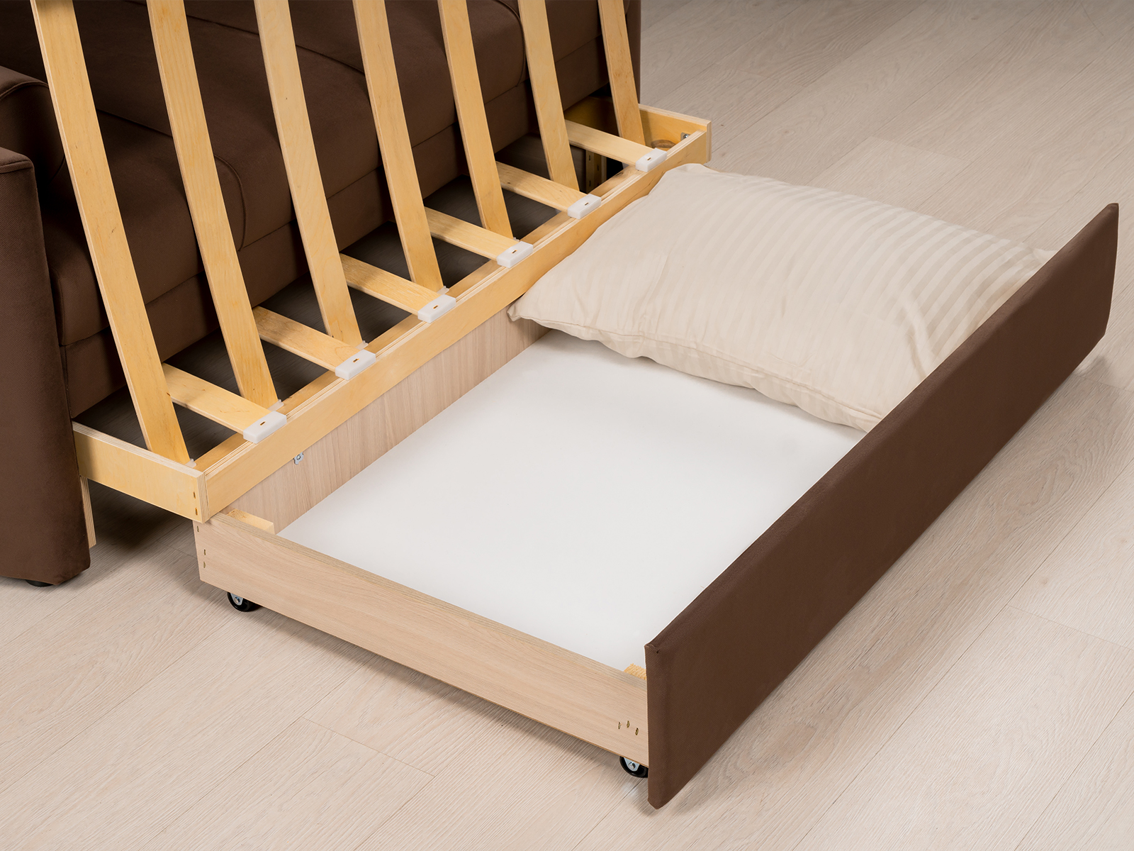 Диван-кровать Мелани Р (120) - компактный современный диванчик. Скругленные подлокотники с кантами подчеркивают эргономичность модели. Простой и надежный механизм трансформации на каждый день обеспечит удобным спальным местом ребенка или подростка. Может использоваться в качестве гостевого спального места для взрослого. Размер сп. места 195 х 120 см, есть небольшой бельевой ящик. Диван выполнен в мягком фактурном велюре. "Пальчиковый эффект" на ткани обивки выражен средне. Опоры - цвет черный, круглые, высота 25 мм., выполнены из высококачественного пластика. Прочность конструкции ножек обеспечена ребрами жесткости и внутренним креплением под фурнитуру.