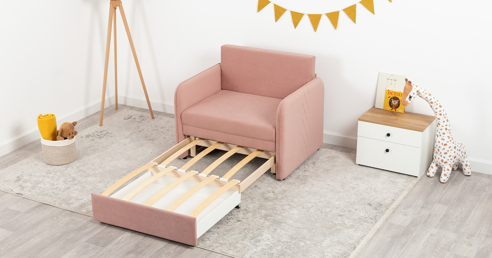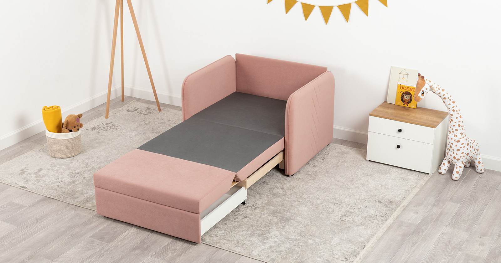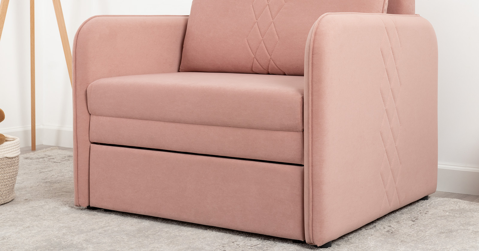 Компактный диван "Вивальди" – стильное решение для детской или гостиной. Этот диван, несмотря на свои скромные габариты, легко превращается в удобное спальное место для детей и подростков. Лаконичный дизайн с декоративной стежкой подчеркивает роскошную фактуру велюра, а компактные размеры позволяют разместить его даже в небольшом пространстве.